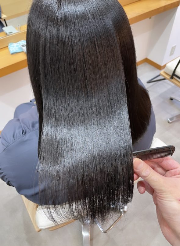 ザラつきもなく艶やかで程よくしっとりでいつまでも触っていたい髪質へ改善していきます。